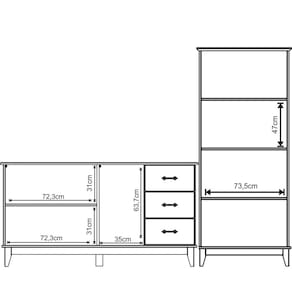 Dimensões do Buffet Aparador: - Altura: 82.1 cm - Largura: 156 cm - Profundidade: 41 cm