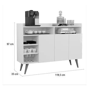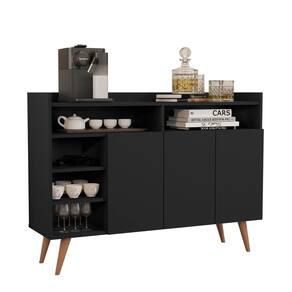 Buffet Aparador 3 Portas Nichos Retro Celta Preto Características do produto:- Produzido em MDP;- Pés em madeira;- 03 Portas com dobradiças metálicas;- 03 Prateleiras.Dimensões do produto:Altura 97 cm;Largura 119,5 cm;Profundidade 35 cm. Marca: Não Informado
