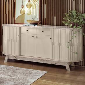 Design curvo, frisos vazados e estrutura completa: o Buffet Aparador Mônaco combina organização e estilo para transformar seu ambiente.