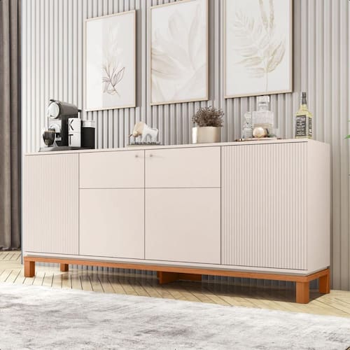O sofisticado Buffet Jace da Caemmun, é um móvel que une design moderno e funcionalidade. Com portas de giro, laterais com textura microrripada e fecho toque, oferece requinte e praticidade ao seu ambiente. O detalhe do canal e o puxador ponto nas portas centrais completam o design minimalista e elegante. Possui pés cavalete com base elevada, proporcionando um visual leve e moderno.