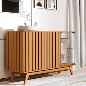 Transforme seu espaço com o Buffet Aparador Açaí da JB Bechara, uma peça sofisticada e funcional para sua sala de jantar ou estar. Com dimensões generosas de 1800 mm de largura, 830 mm de altura e 420 mm de profundidade, oferece amplo espaço de armazenamento sem comprometer o estilo.