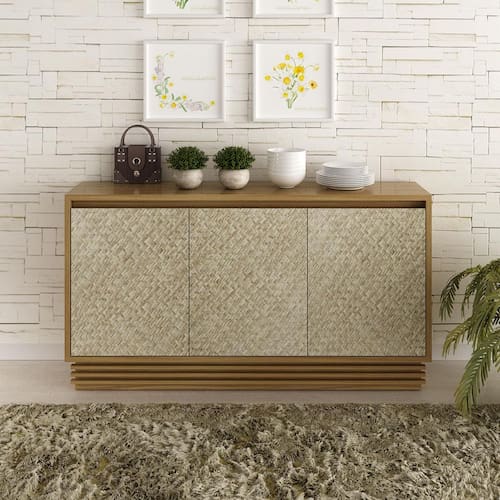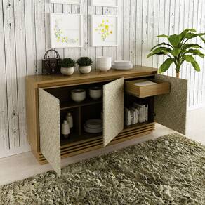 CARACTERÍSTICAS TÉCNICAS: - Produzido em MDP; - Acabamento em Pintura UV; - Possui 3 Portas; - Acabamento em impressão palha texturizada - Conta com 3 Nichos Internos; - Possui 1 Gaveta Interna; - Conta com Corrediças e Dobradiças Metálicas;