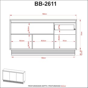 DIMENSÕES: Altura:86,8 cm Largura:160 cm Profundidade:36,3 cm Peso:52,5 Kg