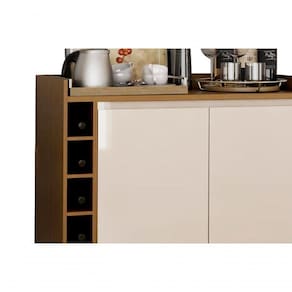 O Buffet com Adega Wine 2 Portas - MóveisAqui possui um lindo design que garante a sofisticação e o requinte que seu ambiente precisa. Suas portas e adegas organizam com perfeição diversos tipos de utensílios de cozinha, além de garrafas e seu superior possui um amplo espaço para acomodar objetos de decoração e outos itens que precisam estar sempre a mão.