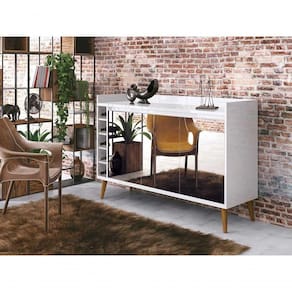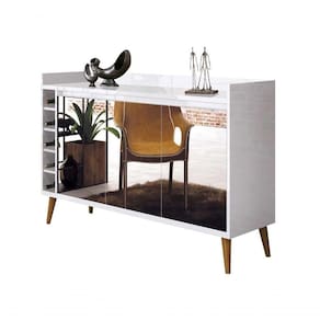 O Buffet com Adega Wine com Espelho - MóveisAqui possui um lindo design que garante a sofisticação e o requinte que seu ambiente precisa. Suas portas e adegas organizam com perfeição diversos tipos de utensílios de cozinha, além de garrafas e seu superior possui um amplo espaço para acomodar objetos de decoração e outos itens que precisam estar sempre a mão.