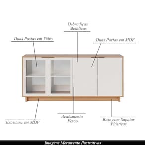 Com quatro portas de vidro transparente, o Buffet Gunga proporciona um toque de requinte ao permitir que você exiba seus itens favoritos enquanto os protege contra poeira. Esta característica única combina beleza e praticidade de maneira harmoniosa.