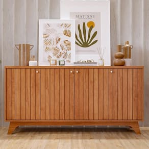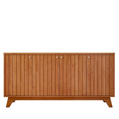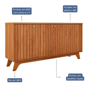 ESPECIFICAÇÕES: Estrutura em MDF Pintura UV 4 Portas Dobradiças metálicas Detalhes em baixo relevo nas portas Interna com prateleiras Tampo de 25mm Puxadores em ABS Pés estilo retrô em MDF 25mm Amplo espaço interno