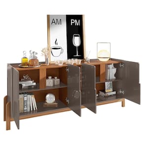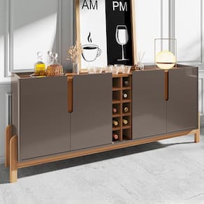 Buffet Aparador Lizz 190cm 4 Portas com Adega - Casa D Adicione estilo e funcionalidade ao seu ambiente com o Buffet Aparador Lizz de 190cm com Adega. Com estrutura em MDP e MDF de alta qualidade e pintura UV, este aparador oferece durabilidade e acabamento refinado. Ele possui 4 portas com dobradiças soft-close para um fechamento suave e seguro, além de portas de MDF usinadas com um sofisticado detalhe curvo. As laterais de MDF de 25 mm, juntamente com o tampo e as prateleiras de 15 mm, garantem robustez e estabilidade. O espaço interno conta com uma adega para até 10 garrafas, ideal para apreciadores de vinhos. Os pés de madeira maciça completam o visual elegante deste móvel, perfeito para sua sala de estar ou jantar.