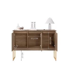 ALTURA DO PRODUTO (CM): 82 | COMNTO DO PRODUTO (CM): 38 | DESCRIÇÃO DO TAMANHO: 82x120x38 cm | ESTILO: Industrial | INSTRUÇÕES/CUIDADOS: Limpar com pano macio e seco, não utilizar produtos abrasivos | LARGURA DO PRODUTO (CM): 120 | MATERIAL PRINCIPAL: MDP | PESO DO PRODUTO (KG): 27 | PRODUTO PRECISA DE MONTAGEM?: Sim, Sugerimos a contratação de um montador para a montagem do produto. Não nos responsabilizamos por causadas no ato da montagem | QUANTIDADE DE PORTAS: 3 Cor: Affara Dourado