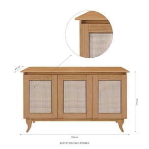 O Buffet Aparador Deltan apresenta design moderno e diferenciado agregando charme e beleza ao ambiente. As portas com estrutura em madeira e Tela tipo Rathan Sintética cria um charme especial no produto. Conta com estrutura em madeira maciça de Pinus de reflorestamento, prateleiras em mdf e base inferior em mdp. Buffet com amplo espaço interno, proporcionando varias opções para sua organização. Acabamento da Porta: Verniz Acabamento da Prateleira: Verniz Acabamento dos Pés: Verniz Altura dos Pés: 16 cm Ambiente Principal: Sala de Jantar Complexidade da Montagem: Alta: deve ser montado por um montador especializado Cor: Imbuia Cor do Produto: Imbuia Cor Interna: Natural Escala de Brilho: Fosco Escala de Brilho da Porta: Semi-Brilho Escala de Brilho da Prateleira: Fosco Informações Complementares: Peso total distribuídos em seu tampo superior e prateleiras internas. Suas portas possuem estrutura em madeira maciça e tela tipo rattan sintética no centro. Itens Inclusos: 1 Buffet Aparador e Kit Ferragens Manual de Montagem e Instalação: https://product-hub-prd.madeiramadeira.com.br/846852/documents/11e76b81-3d0b-4702-9c91-1c7f7d14e1ad1103175buffetteladeltan1.pdf Material da Porta: Madeira Maciça Material da Prateleira: MDF Material dos Pés: Madeira Maciça Material Principal: Madeira Maciça Necessita Montagem: Sim Origem do Produto: Nacional Pés Reguláveis: Não Peso: 20 kg Peso Máximo por Prateleira: 10 kg Possui Adega: Não Possui Espelho: Não Possui Nicho: Não Possui Pés: 04 Possui Portas: 03 Possui Rodízio: Não Recomendações de Uso, Manutenção e Limpeza: Limpar com pano levemente umedecido seguido imediatamente de pano seco Sapatas Niveladoras: Não Sistema de Montagem: Parafusos, Cavilha, Trapézio e Pregos Suporta Até (kg): 50 kg Tipo de Dobradiça/Corrediça da Porta: Aço Tipo de Madeira Maciça: Pinus Tipo de Madeira Maciça da Porta: Pinus Tipo de Madeira Maciça dos Pés: Pinus Tipo de Porta: Bater Tipo de Puxador da Porta: Embutido