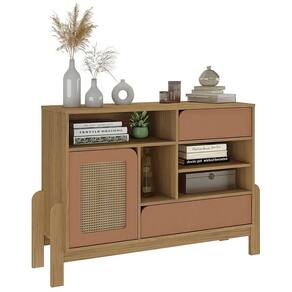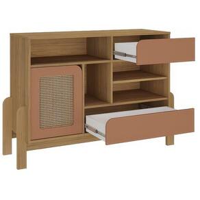 Buffet Aparador Nature Carvalho/ Terracota/ Palha Buffet Aparador Nature Carvalho/ Terracota/ Palha - Apresentamos o Buffet Aparador Nature, uma peça de mobiliário que irá encantar a todos os públicos. Com uma combinação de cores suaves e harmoniosas, essa linha traz consigo a essência da natureza, proporcionando um toque natural e elegante aos seus ambientes. Seu acabamento em pintura 3D na cor palha, aliado aos pés de MDF de 25 mm, conferem à peça uma durabilidade excepcional. Além disso, o buffet conta com duas gavetas com abertura usinada e corrediças telescópicas, uma porta com sistema de amortecimento, amplo tampo e nichos para combinar decorações incríveis, e um espaçoso interior. O acabamento de longa duração e fácil limpeza tornam esse buffet uma escolha perfeita para quem busca qualidade e praticidade. Disponível nas cores Carvalho/Terracota/Palha e Naturale/Branco/Palha. Adicione um toque de natureza à sua casa com o Buffet Aparador Nature.