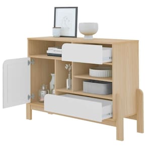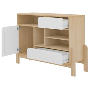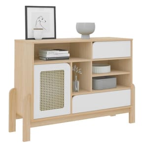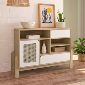 Buffet Aparador Nature Naturale/ Branco/ Palha Buffet Aparador Nature Naturale/ Branco/ Palha - Apresentamos o Buffet Aparador Nature, uma peça de mobiliário que irá encantar a todos os públicos. Com uma combinação de cores suaves e harmoniosas, essa linha traz consigo a essência da natureza, proporcionando um toque natural e elegante aos seus ambientes. Seu acabamento em pintura 3D na cor palha, aliado aos pés de MDF de 25 mm, conferem à peça uma durabilidade excepcional. Além disso, o buffet conta com duas gavetas com abertura usinada e corrediças telescópicas, uma porta com sistema de amortecimento, amplo tampo e nichos para combinar decorações incríveis, e um espaçoso interior. O acabamento de longa duração e fácil limpeza tornam esse buffet uma escolha perfeita para quem busca qualidade e praticidade. Disponível nas cores Carvalho/Terracota/Palha e Naturale/Branco/Palha. Adicione um toque de natureza à sua casa com o Buffet Aparador Nature.