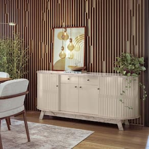 O Buffet Mônaco traz sofisticação e funcionalidade à sala de estar. O detalhe exclusivo da Madetec é a porta curva em MDF, que garante autenticidade, praticidade e um acabamento sofisticado.