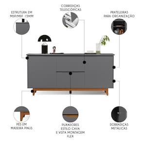 Com o Buffet Aparador para Sala de Jantar 163cm Flow Cinza, da EJ Móveis, o design moderno encontra funcionalidade elegante, e vai transformar sua sala de jantar em um verdadeiro santuário gastronômico.