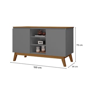 O Buffet Aparador Retrô Linhares com 2 Portas é a escolha certa para quem busca um móvel versátil, bonito e funcional. Seu visual com pés palito e linhas limpas traz um toque vintage contemporâneo, valorizando diferentes estilos de decoração. As 2 portas com prateleira interna oferecem ótimo espaço para armazenar louças, utensílios ou objetos diversos. O tampo superior também é funcional, servindo como apoio para bandejas, vasos ou itens decorativos. Fabricado com materiais de qualidade, o Linhares oferece estrutura firme, excelente acabamento e durabilidade, sendo ideal para compor salas de jantar, estar ou ambientes integrados com praticidade e estilo. Características Tipo: Buffet / Aparador Modelo: Linhares com 2 Portas Cor: Cinza/Nature Design: Retrô com pés palito Portas: 2 com prateleira interna Dimensões do Produto Altura: 75cm Largura: 120cm Profundidade: 34cm ATENÇÃO AS IMAGENS SÃO MERAMENTE ILUSTRATIVAS E PODEM SOFRER VARIAÇÕES DE COR E PEQUENOS DETALHES DE ACORDO COM O SEU MONITOR, ILUMINAÇÃO DO AMBIENTE E ATÉ MESMO A SUA PERCEPÇÃO VISUAL. Marca: Não Informado
