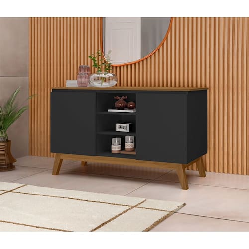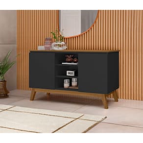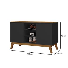 O Buffet Aparador Retrô Linhares com 2 Portas é a escolha certa para quem busca um móvel versátil, bonito e funcional. Seu visual com pés palito e linhas limpas traz um toque vintage contemporâneo, valorizando diferentes estilos de decoração. As 2 portas com prateleira interna oferecem ótimo espaço para armazenar louças, utensílios ou objetos diversos. O tampo superior também é funcional, servindo como apoio para bandejas, vasos ou itens decorativos. Fabricado com materiais de qualidade, o Linhares oferece estrutura firme, excelente acabamento e durabilidade, sendo ideal para compor salas de jantar, estar ou ambientes integrados com praticidade e estilo. Características Tipo: Buffet / Aparador Modelo: Linhares com 2 Portas Cor: Preto/Nature Design: Retrô com pés palito Portas: 2 com prateleira interna Dimensões do Produto Altura: 75cm Largura: 120cm Profundidade: 34cm ATENÇÃO AS IMAGENS SÃO MERAMENTE ILUSTRATIVAS E PODEM SOFRER VARIAÇÕES DE COR E PEQUENOS DETALHES DE ACORDO COM O SEU MONITOR, ILUMINAÇÃO DO AMBIENTE E ATÉ MESMO A SUA PERCEPÇÃO VISUAL. Marca: Não Informado