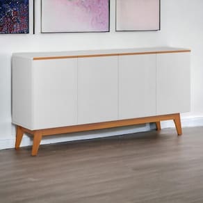 Esse produto é a peça que faltava para complementar sua sala de jantar. Seu design clean com cava no lugar de puxadores e pés em madeira garante o requinte e delicadeza que você busca para agregar o seu ambiente!