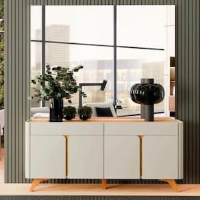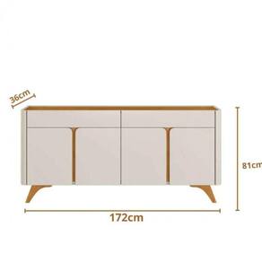 O Buffet Aros de 4 portas possui um lindo charme e sofisticacao, um produto com design moderno em curva, possuindo vista flex em duas cores, alem de dobradicas em slow motion. O buffet alem de ter esse lindo design, ainda possui perfeito pes de madeira macica. Um produto perfeito para colocam em qualquer comodo de sua casa.