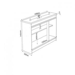Dimensões: Altura: 72 cm Largura: 136 cm Profundidade: 42 cm Peso: 37,5 kg