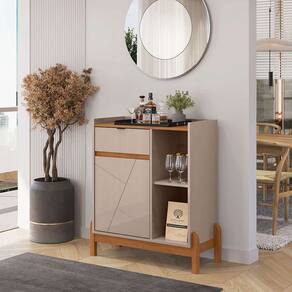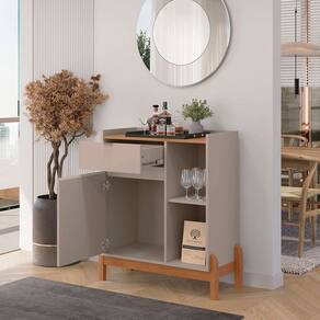 que tal o buffet bari? se você gosta de receber em casa ou de proporcionar bons momentos à família, pode contar com o buffet bari nessas ocasiões. além de ter ótimo tampo para apoiar itens de servir, como bandejas e taças, ou atuar como barzinho e receber as garrafas, o móvel tem 1 porta e nichos que ficam responsáveis por guardar tudo e deixar sempre pronto para o uso. já o design aposta na presença dos pés em madeira, que dão elegância e sofisticação ao ambiente. perfeito, não é?