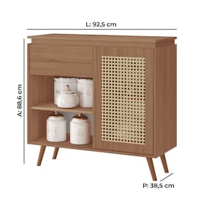 Apresentamos o Buffet Bourbon, fabricado 100% em MDF, apresenta um design sofisticado. Com aplique de poliestireno modelo tela indiana na porta. Seus pés em estilo retrô adicionam um charme vintage, enquanto a estrutura inclui 2 nichos, 1 gaveta e 1 porta para armazenamento versátil. Ideal para quem busca elegância e funcionalidade em um só móvel, além de produzir a agradável sensação do ter um charmoso Cantinho do Café. Ele é perfeito para transformar e organizar qualquer ambiente com estilo.