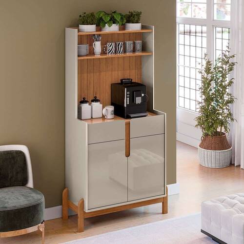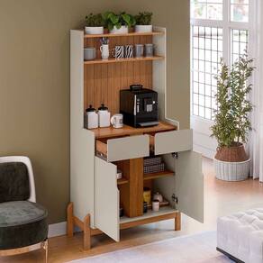 que tal o buffet cantinho do café lizz? para transformar os momentos de beber café ou chá em ocasiões ainda mais especiais, aposte no buffet cantinho do café lizz. completo para essa usabilidade, ele tem espaço para receber cafeteira, prateleiras e ainda conta com 2 portas, assim você consegue organizar xícaras, talheres e até potinhos de petiscos. já o design aposta na presença dos pés em madeira e no detalhe frisado, que dão elegância e sofisticação ao ambiente. perfeito, não é? Marca: Modern