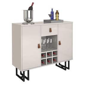 Buffet Com Adega E Nichos Branco Pés Metálicos Preto Moderno