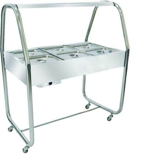 - Equipamento de acordo com a Portaria 371/09 do INMETRO, com selo de conformidade expedido pelo mesmo; - Equipamento com rodízios com trava para facilitar o transporte; - Temperatura de aquecimento controlada por termostato de 10 à 70C. - Estrutura tubular 1.1/2" curvado em máquina especial com estrutura cromada; - Cubas de acordo com o padrão mundial Gastronorm, de 1/2 e 1/1; - Corpo e banho-maria em aço inox AISI 430; - Tampas das cubas com pegador estampado em aço inox; - Opção de conservação de alimentos resfriados através de placas de Gelo-X (uma por cuba); - Temperatura de aquecimento controlada por termostato. *** OBS: PRODUTO DESMONTADO****