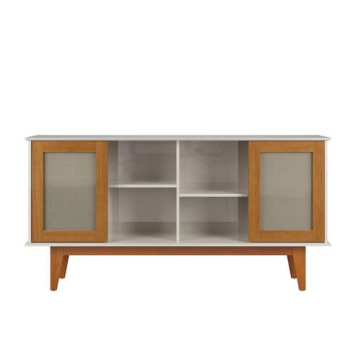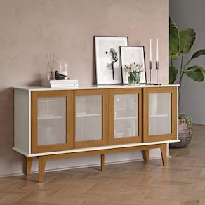 - Possui 4 portas de correr com detalhe central em fibra sintética semelhante ao rattan