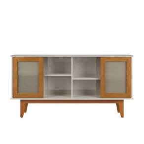 - Possui 4 portas de correr com detalhe central em fibra sintética semelhante ao rattan