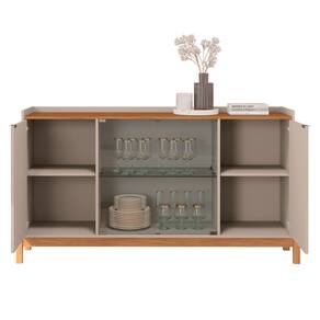 Buffet feito em MDP/MDF. Possui 4 portas sendo 2 de vidro e 3 prateleiras sendo uma de vidro.