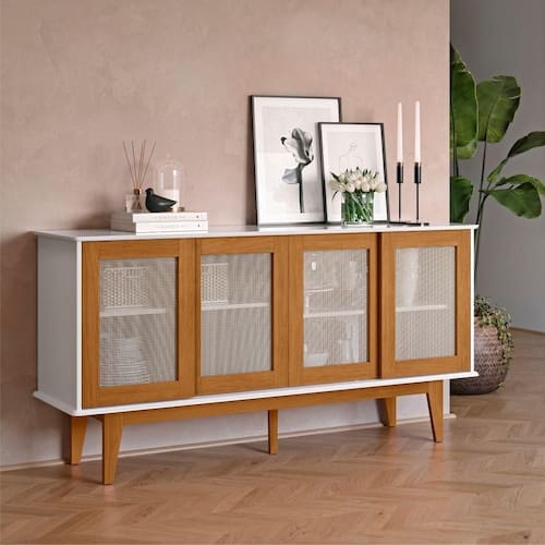 Buffet Eibar Com 4 Portas Branco Nature Tampo de 18mm em MDF