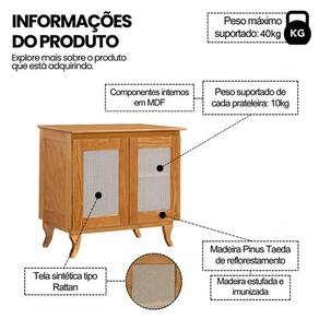 AS IMAGENS SÃO MERAMENTE ILUSTRATIVAS E PODEM SOFRER VARIAÇÕES DE COR E PEQUENOS DETALHES DE ACORDO COM O SEU MONITOR, ILUMINAÇÃO DO AMBIENTE E ATÉ MESMO A SUA PERCEPÇÃO VISUAL.Buffet em Madeira MaciÃa Deltan 2 Portas em Telinha - Imbuia