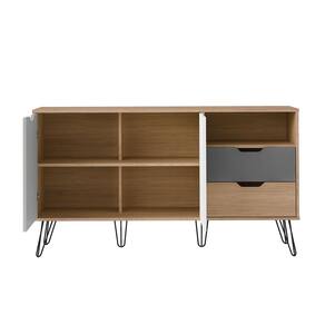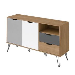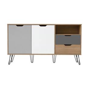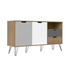 Buffet Estocolmo com Gaveta e Nicho para TV até 60" | Artely Charme e praticidade se unem no Buffet Estocolmo da Artely, ideal para quem busca funcionalidade com design contemporâneo. Com duas portas e gavetas espaçosas, ele oferece amplo espaço para organizar seus itens, enquanto o nicho inferior garante versatilidade para objetos decorativos ou essenciais. Os pés de metal trazem modernidade e estabilidade, e os puxadores com abertura usinada adicionam um toque de sofisticação ao visual do móvel. Seja para sua sala de jantar ou cozinha, este buffet é a escolha perfeita para manter seu ambiente organizado e estiloso. Características:\nModelo: Estocolmo, fabricado pela Artely. Cor: Carvalho/Grafite/Branco/Prata. Altura: 65 cm. Comprimento: 140 cm. Largura: 40 cm. Peso: 28,2 kg. Fácil montagem com kit completo de ferragens incluído.\nBenefícios:\nDuas portas para organização eficiente. Duas gavetas amplas para armazenamento. Nicho inferior funcional para decoração ou itens essenciais. Pés de metal para durabilidade e estilo. Acompanha vídeos de montagem do produto. Caso precise de ajuda, pelo chat.\nEspecificações:\nMateriais: MDF 15mm / MDP 15mm. Portas: 2. Gavetas: 2. Prateleiras: 1. Nichos: 2. Pés: Metálicos. Tamanho de TV Suportado: 60". Peso suportado: 35 kg. Pintura: UV.\nAvisos:\nA imagem é meramente ilustrativa. Confira as especificações de cor e tamanho antes de finalizar a compra. Objetos de decoração não estão inclusos. Consulte o manual do produto para instruções de instalação e manutenção ou contrate um profissional.\n Compre agora seu Buffet Estocolmo com Gaveta e Nicho para TV até 60" | Artely na DoShop. Ir às compras nunca foi tão fácil, rápido e seguro!