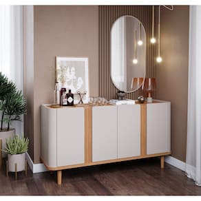 Buffet Eva, sofistique o ambiente com o Buffet da Cimol,um excelente móvel para guardar suas louças, utensílios e objetos com mais praticidade e ainda modernizar o seu lar, com um móvel que reúne requinte e estilo. Acabamento da Gaveta: Acabamento da Porta: Pintura UV Acabamento da Prateleira: Pintura UV Acabamento dos Pés: Pintura Altura do Espelho: Altura do Espelho 01: Altura do Espelho 02: Altura do Espelho 03: Altura do Espelho 04: Altura do Espelho 05: Altura do Espelho 06: Altura dos Pés: 18 Ambiente Principal: Sala de Jantar Complexidade da Montagem: Média: pode ser montado por mais de uma pessoa e/ou necessite de maior conhecimento para montagem Cor: Off White/Nature Cor do Produto: Off White/Nature Cor Flex: Não Cor Interna: Escala de Brilho: Fosco Escala de Brilho da Gaveta: Escala de Brilho da Porta: Semi-Brilho Escala de Brilho da Prateleira: Fosco Espessura do Espelho: Fita Integrada: Formato do Espelho: Gaveta com Chave: Informações Complementares: Itens Inclusos: 1 Buffet Largura do Espelho: Largura do Espelho 01: Largura do Espelho 02: Largura do Espelho 03: Largura do Espelho 04: Largura do Espelho 05: Largura do Espelho 06: Linha ou Coleção: Manual de Especificação Técnica: Manual de Montagem e Instalação: https://cdn2.madeiramadeira.com.br/atributo/cimol/918298-esquema-de-montagem-buffet-eva.pdf Material da Gaveta: Material da Porta: MDF Material da Prateleira: MDF Material do Puxador da Gaveta: Material do Puxador da Porta: Material dos Pés: Madeira Maciça Material Principal: MDF Montagem Flex: Não Necessita Montagem: Sim Origem do Produto: Nacional Pés Reguláveis: Não Peso: 48.74 Peso Máximo por Gaveta: Peso Máximo por Prateleira: 10 Possui Adega: Não Possui Espelho: Não Possui Nicho: Não Possui Pés: 04 Possui Portas: 04 Possui Rodízio: Não Quantidade de Espelho: Quantidade de Garrafas da Adega: Recomendações de Uso, Manutenção e Limpeza: Para manter seu móvel novo por muito mais tempo, evite locais úmidos, mantenha-o distante de líquidos. Para limpá-lo com segurança utilize uma flanela seca sem produtos abrasivos Rodízio com Trava: Não Sapatas Niveladoras: Sim Sistema de Montagem: Cavilha, Parafuso, Minifix e Conector de montagem Suporta Até (kg): 40 Tamanho: Tipo de Corrediça da Gaveta: Tipo de Dobradiça/Corrediça da Porta: Metálica Tipo de Fixação do Espelho: Tipo de Madeira Maciça: Tipo de Madeira Maciça da Gaveta: Tipo de Madeira Maciça da Porta: Tipo de Madeira Maciça da Prateleira: Tipo de Madeira Maciça do Puxador da Gaveta: Tipo de Madeira Maciça do Puxador da Porta: Tipo de Madeira Maciça dos Pés: Tauari Tipo de Porta: Bater Tipo de Puxador da Gaveta: Tipo de Puxador da Porta: Embutido