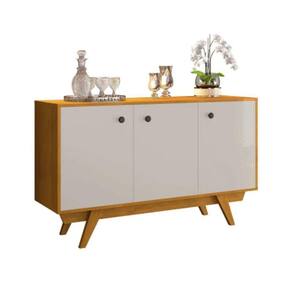 Buffet Harmonia 3 Portas Pés Madeira Maciça Jcm Movelaria Cinamomo / Off White Buffet Harmonia 3 Portas Pes Madeira Macica JCM Movelaria O Buffet Harmonia e ideal para sua sala, com design retro ele ira agregar muito mais charme e requinte ao seu ambiente. Possui 3 portas com dobradicas de pressao e puxadores em ABS, alem de possui um excelente espaco interno. Com um Amplo tampo para acomodar bebidas, objetos de decoracao, tacas, etc. Um produto 100 em MDP e pes em Madeira Macica, esses atributos garantem ao produto maior resistencia e durabilidade.
