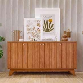 que tal o buffet isa?buscando por uma maneira elegante de organizar sua sala de jantar ou estar? o buffet isa é a resposta. enquanto as divisões internas oferecem espaço generoso para guardar louças, taças e outros utensílios essenciais para momentos de confraternização, o tampo espaçoso é perfeito para exibir suas hores receitas em bandejas durante refeições em família, ou para destacar itens decorativos no dia a dia. já o design moderno com uma combinação de acabamento madeirado e detalhe ro adiciona um toque de elegância e sofisticação ao ambiente. agora, seu lar-style ficará completo de verdade. Marca: Modern