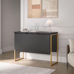 ALTURA DO PRODUTO (CM): 82 | COMPRIMENTO DO PRODUTO (CM): 38 | CONTEÚDO DA EMBALAGEM: 1 Buffet | ESTILO: Industrial | LARGURA DO PRODUTO (CM): 120 | MATERIAL PRINCIPAL: MDP | PESO DO PRODUTO (KG): 27 | PRODUTO: Buffet | PRODUTO PRECISA DE MONTAGEM?: Sim,Sugerimos a contratação de um montador para a montagem do produto. Não nos responsabilizamos por causadas no ato da montagem | DESCRIÇÃO DE TAMANHO: 82x120x38 cm | INSTRUÇÕES/CUIDADOS: Limpar com pano macio e seco, não utilizar produtos abrasivos | Requer montagem: Sim | Largura: 120 | Comprimento: 38 | Profundidade: 38 | Altura: 82 | Quantidade de caixas de embalagem: 2 Cor: Preto Dourado
