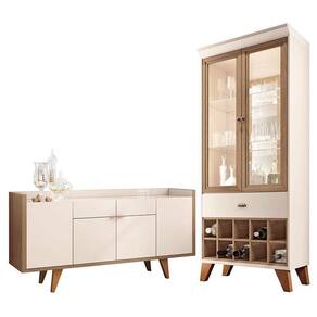 Buffet Melodia e Cristaleira Ópera Off White Castanho HB Móveis