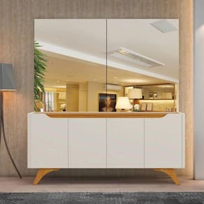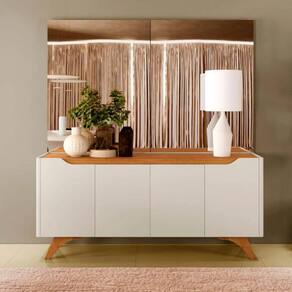 O buffet Grecia conta com design clean e sofisticado com cantos arredondados em MDF, quatro portas com dobradiças de 35mm slow motion e batente de silicone com fechamento silencioso, para melhor durabilidade do seu móvel, Possui também uma prateleira interna e pés de madeira maciça. As cores disponíveis são off white e off white com naturalle.