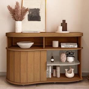 O Buffet 1 Porta de Correr 120 cm ARLY une sofisticação e funcionalidade para valorizar qualquer ambiente. Seu tampo curvo em Tamburato de 50mm traz imponência, enquanto a porta ripada deslizante oferece um design exclusivo e prático. Com a opção de montagem reversível, permite escolher a cor que melhor harmoniza com sua decoração. O puxador em alumínio adiciona modernidade ao móvel. Este móvel chegará em sua casa separada em 01 volume.