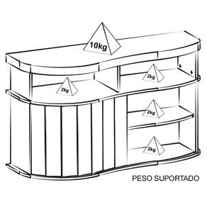 Peso suportado: Tampo 10kg / Nichos 2kg cada
