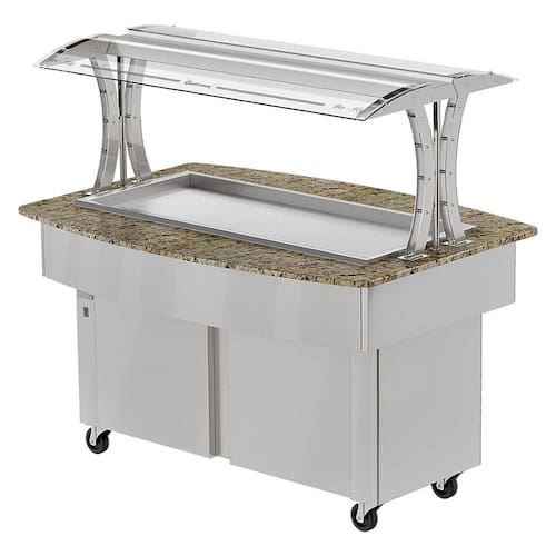 Este buffet refrigerado éequipado com rodíziospara fácil locomoção e freios para garantir a estabilidade durante o uso. Apista fria tem a capacidade de 8 cubas (1/2 GN), proporcionando amplo espaço para armazenar e exibir seus alimentos (cubas não inclusas). Além disso, o equipamento possuiisolamento térmico em poliuretano expandido, garantindo que seus alimentos permaneçam na temperatura ideal. A pista refrigerada funciona na faixa detemperatura de -10 a 10C.