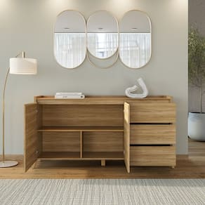 O Buffet Rennes 3 Gavetas - Casa D Móveis está um arraso, seu design moderno e inovador. Elaborado em material de MDP e MDF com acabamento em pintura UV, possui 3 gavetas com corrediças telescópicas, 2 portas, 1 prateleira interna que garante a organização e praticidade ao dia-a-dia, pois acomoda desde utensílios de cozinha, pratos, copos e objetos decorativos. Suas laterais são usinadas em MDF de 25mm, portas de MDF sem puxadores com dobradiças soft-close, e seus pés são de madeira maciça. Você vai se surpreender com a qualidade e design deste produto.Dimensões do Produto Montado:Altura: 84cmLargura: 166cmProfundidade: 38,5cmObservações:– Corrediças telescópicas– Pés em Madeira maciça– Tampo e Portas de MDF usinadas– Contém Três GavetasMarca: Casa DModelo: RennesReferência: 50534680WATENÇÃO: Não nos responsabilizamos pela montagem deste produto. Aconselhamos a contratação de um profissional.