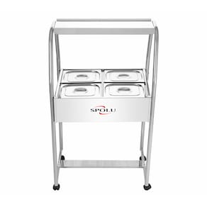 O Buffet Salada 4 cubas SPOLU tem a função de manter suas saladas e alimentos conservados e resfriados enquanto em exposição. Acompanha 4 unidades de gelo-x, componete essencial para manter a temperatura resfriada. Possui cubas fabricadas em aço inox 201, tampas e moldura externa em aço inox 430 e estrutura de sustentação tubular. É de fácil mobilidade e manuseio devido a estrutura tubular que é dotada de rodízios giratórios. Produtos SPOLU - CONCEITO DE QUALIDADE.