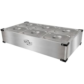 O Buffet Salada de Bancada Spolu Gelo-X 6 Cubas Frias SPL-527 tem a função de manter suas saladas e alimentos conservados e resfriados. Acompanha 6 unidades de gelo-x, componente essencial para manter a temperatura resfriada. Possui 6 cubas com capacidade de 4,6 litros cada, fabricadas em aço inox 201, tampas e moldura externa em aço inox 430.