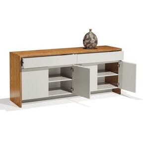 Buffet Sevilha Univ 180 Cm Laca Cinza Claro Off White Brilhante Com Carvalho Mel