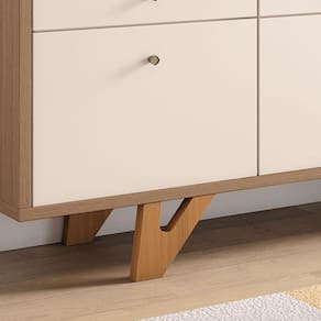 - Pés de madeira maciça com design exclusivo e acabamento envernizado