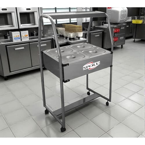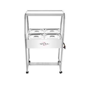 A função do Buffet térmico SPOLU é manter os alimentos servidos em suas cubas quentes enquanto em exposição. Possui cubas fabricadas em aço inox 201, tanque, tampas e moldura externa em aço inox 430 e estrutura de sustentação tubular. Sua resistência blindada é confeccionada em aço inox e controlada por um termostato com escala de 30ºC a 120ºC. Possui uma lâmpada piloto em seu painel indicando a função liga/desliga do termostato. Para facilitar a movimentação e o deslocamento a estrutura tubular é dotada de rodízios giratórios. Produtos SPOLU - CONCEITO DE QUALIDADE.