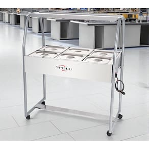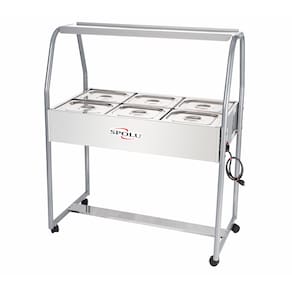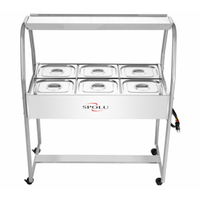 A função do Buffet térmico SPOLU é manter os alimentos servidos em suas cubas quentes enquanto em exposição. Possui cubas fabricadas em aço inox 201, tanque, tampas e moldura externa em aço inox 430 e estrutura de sustentação tubular. Sua resistência blindada é confeccionada em aço inox e controlada por um termostato com escala de 30ºC a 120ºC. Possui uma lâmpada piloto em seu painel indicando a função liga/desliga do termostato. Para facilitar a movimentação e o deslocamento a estrutura tubular é dotada de rodízios giratórios. Produtos SPOLU - CONCEITO DE QUALIDADE.